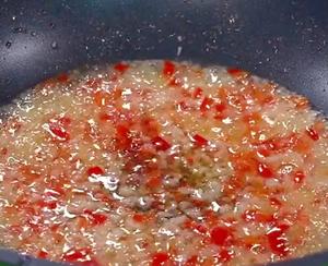 “Heat oil in a clean wok. Stir-fry a generous amount of minced garlic and fresh bird’s eye chilies until aromatic. Add a splash of light soy sauce and oyster sauce to season.”