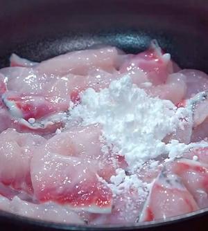 “Marinate the fish slices with salt, pepper, half an egg white, and starch for 10 minutes, mixing well by hand.”