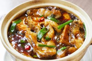 Heat a clay pot over medium heat. Add 1 tablespoon of cooking oil, 10 whole garlic cloves, 1/4 onion (cut into large chunks), a small handful of scallion sections (about 10g), and 1/2 teaspoon of bird’s eye chili. Stir-fry until fragrant.