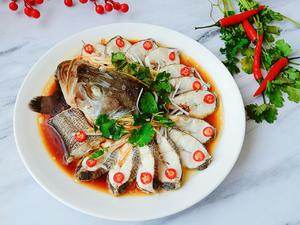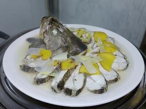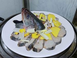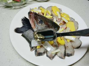 After cleaning the fresh sea bass, cut off the head and tail. Slice the body into 1 cm thick sections, but do not cut all the way through at the belly (keep the bottom intact).