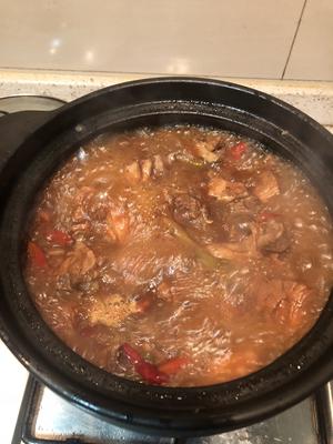 Bring it to a boil over high heat, then reduce to a low heat and simmer for 1–2 hours. For a tender duck, you can shorten the simmering time appropriately. For an older duck, stew it until it becomes tender and soft, at least 1 hour. When the broth is reduced to about one-third, turn the heat back to high and reduce the sauce.
