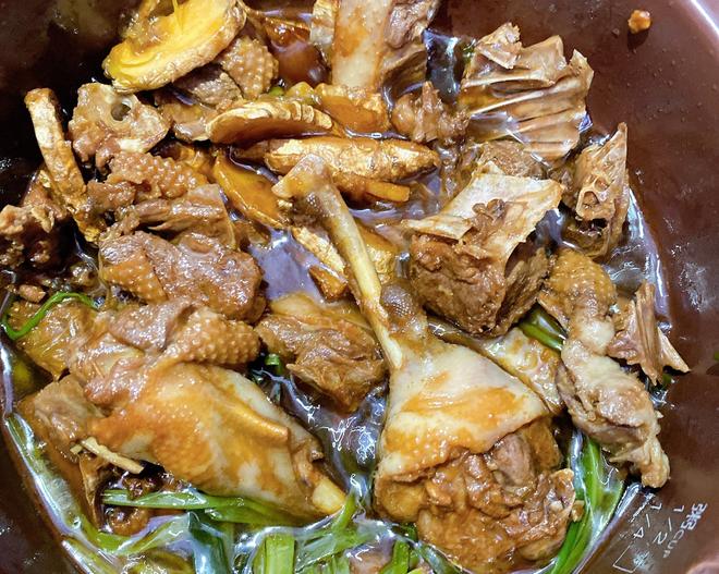 After stir-frying the ginger and scallions until fragrant, add the blanched duck pieces and toss until the duck becomes aromatic.