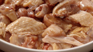 Add the chicken pieces and stir-fry until they are evenly coated and take on color. Splash some Huadiao wine around the edge of the pot to deglaze, then stir-fry a few more times.