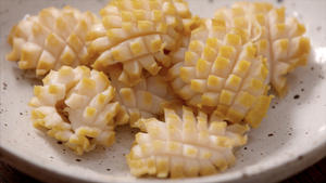 Remove the abalone meat from the shells and discard the viscera (internal organs). Cut off the hard mouthpart (the “tooth”). Clean thoroughly, then add salt, cornstarch, and peanut oil. Rub vigorously to remove any slime or impurities, then rinse clean again.