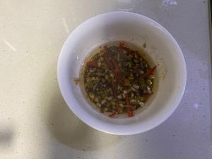 “Pour sizzling hot oil over the aromatics. Then, add 2 tablespoons of seasoned soy sauce for seafood (regular light soy sauce works as a substitute), 1 tablespoon of aged vinegar, ½ teaspoon of sugar, and ½ teaspoon of chicken essence. Stir well to combine.