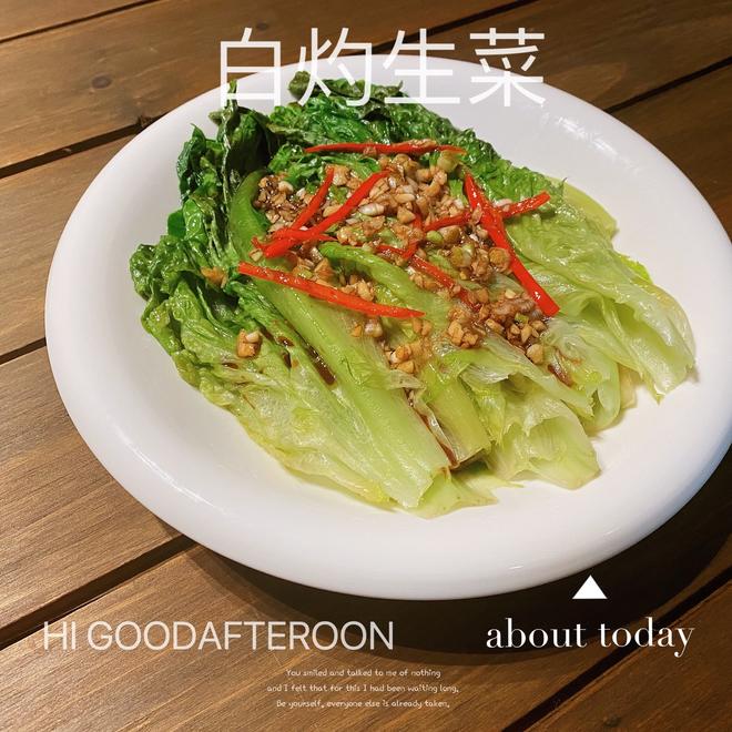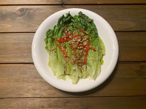 “Blanch for about 30 seconds, or until the lettuce turns a deeper, vibrant green. Immediately drain well and transfer to a serving plate.”
