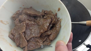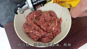 “Mix well, then add 5g of peanut oil and coat the beef evenly. If you’re not in a rush, marinate it in the fridge for 20-30 minutes—it will make the beef even more tender and silky.”