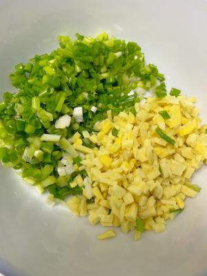 “While the chicken is cooking, chop up the ginger and scallions and put them in a large bowl. The more, the merrier—it makes it extra fragrant!”